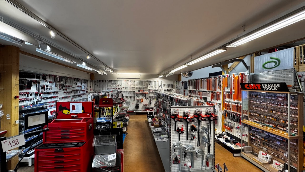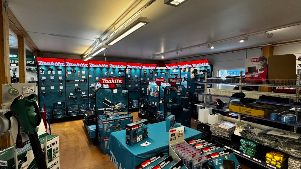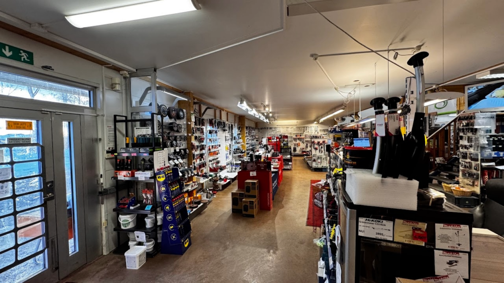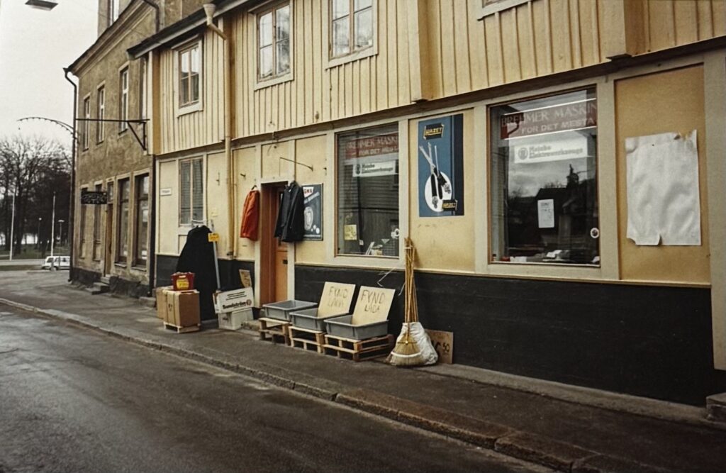Bilder på Brehmer Maskins butik i nutid och i dåtid